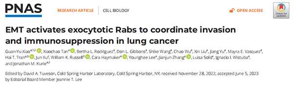 PNAS|上皮间质转化(EMT)激活胞外分泌Rab蛋白,协调肺癌的侵袭和免疫抑制